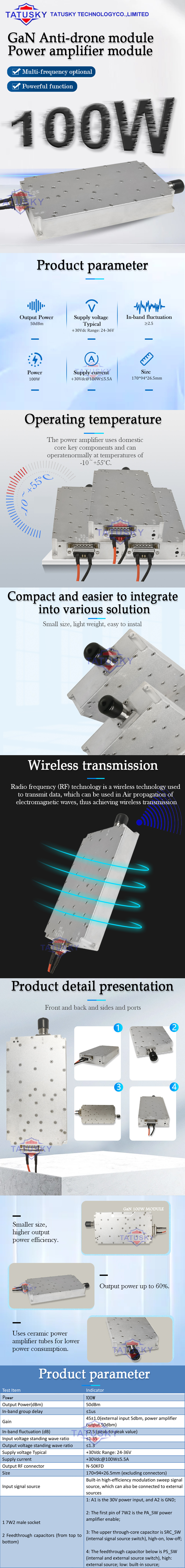 100W 433MHz-5.8GHz GaN Anti-drone Module Power Amplifier Module